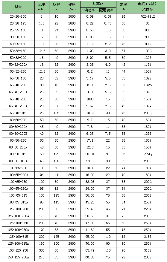 離心熱油泵適用于下列范圍1、石油及化學(xué)工業(yè):聚合、縮合、蒸餾、精餾、熔融等;2、油脂工業(yè):脂肪酸蒸餾、油脂分解、脂化等;3、合成纖維工業(yè):聚合熔融、紡絲、延伸等;4、紡織印染工業(yè):熱定型、烘干、熱熔染色等;5、塑料及橡膠工業(yè):熱壓、壓延、擠壓、硫化成型等;6、造紙工業(yè):干燥、波紋紙加工等;7、木材工業(yè):多合板、纖維熱壓成型、木材干燥等;8、建筑工業(yè):瀝青加熱等;另外,離心熱油泵還在機(jī)械工業(yè),醫(yī)藥生產(chǎn)中廣泛應(yīng)用。離心熱油泵性能范圍(按設(shè)計(jì)點(diǎn))1、流量1――500m3/h;2、揚(yáng)程10-125m;3、溫度-20oC-350oC;離心熱油泵型號(hào)表示:以BRY50-32-200A為例BRY 50-32-200 ABRY表示:離心熱油泵50表示: 泵體入口直徑(mm)32表示:離心熱油泵泵體出口直徑(mm)200表示:葉輪名義外徑(mm)A表示: 離心熱油泵葉輪外徑一次切割說(shuō)明:葉輪直徑的順序以A、 B 、C 表示,大直徑時(shí)不表切割示